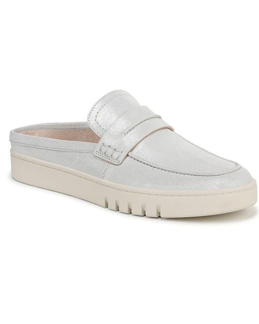 A penny keeper brings classic detail to the vamp of a platform-lofted mule ground on a durable rubber sole for ease in every stride. 1 1/4" platform Leather upper/synthetic lining/rubber sole Imported Color: white