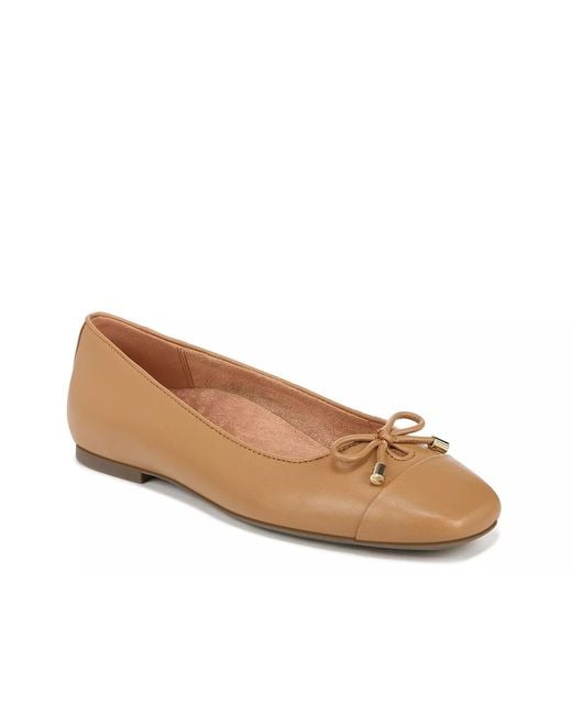 The Vionic Klara flat lends a minimalist, yet trendy, style to your casual attire. Square cap toe and tied bow detail accentuate the appeal of this flat designed with LWG Gold-rated leather upper for a blend of sustainability and long-lasting comfort. LWG Gold-rated leather upper. Slip-on. Square cap toe. Synthetic lining. EVA footbed. 0.5" heel. Synthetic sole made with 25% recycled TPR.