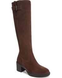 Go to Nordstrom RackA brushed buckle adds a moto-inspired aesthetic to a knee-high boot lifted by a chunky block heel and fastened with a full-length side zipper. Built-in VioMotion technology offers contoured arch support, with shock-absorbing