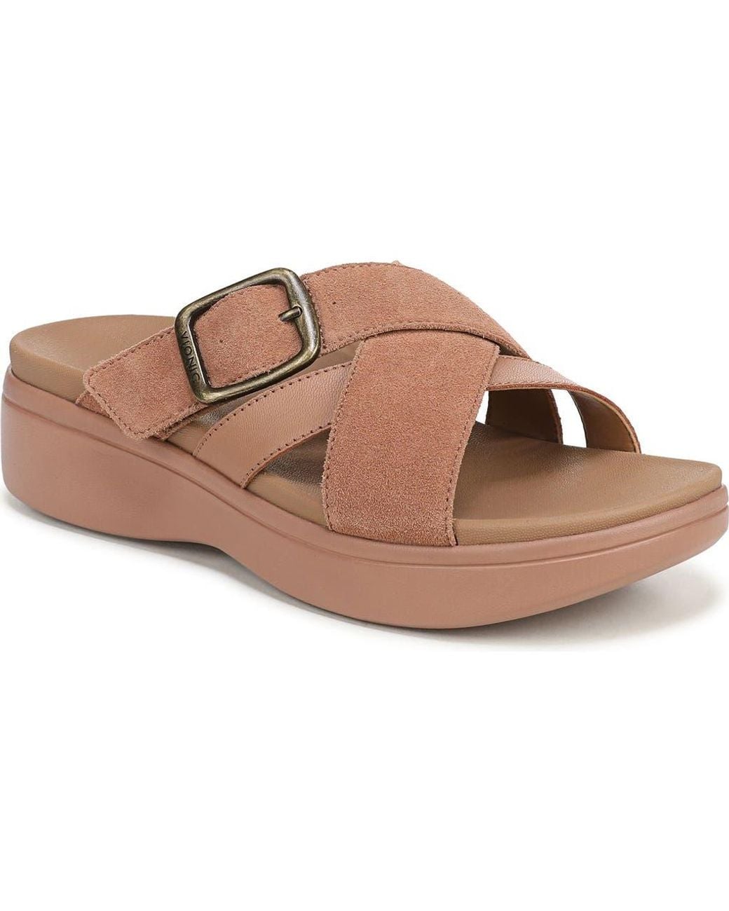 Built-in VIO MOTION Technology, featuring contoured arch support with shock-absorbing cushioning and a deep heel cup for stability and forefoot flexibility ensures daylong comfort and full-body alignment in this strappy leather sandal. 1 3/4" heel; 1 1/4" platform; 1/2" heel slope Adjustable hook-and-loop strap Leather upper/synthetic lining and sole Imported Color: brown