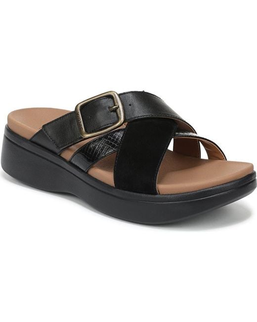 Built-in VIO MOTION Technology, featuring contoured arch support with shock-absorbing cushioning and a deep heel cup for stability and forefoot flexibility ensures daylong comfort and full-body alignment in this strappy leather sandal. 1 3/4" heel; 1 1/4" platform; 1/2" heel slope Adjustable hook-and-loop strap Leather upper/synthetic lining and sole Imported Color: black