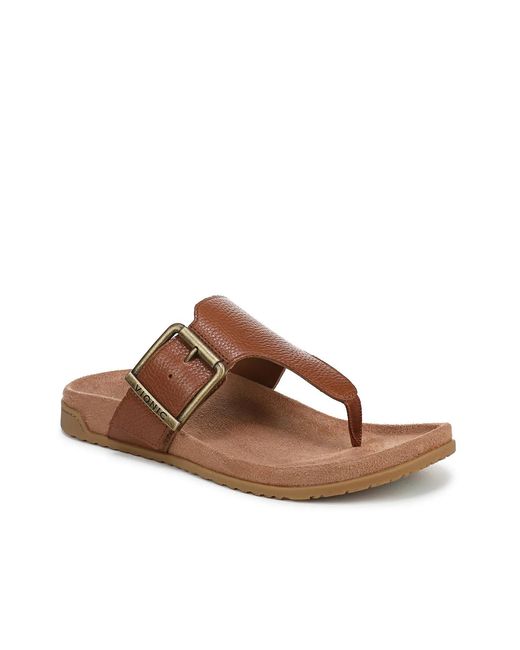 Upgrade your poolside style with the Emma sandals from Vionic. This classic flip flop-inspired design still features a slip-on design and is crafted with a high-quality leather material and a contoured footbed for support. Color: brown
