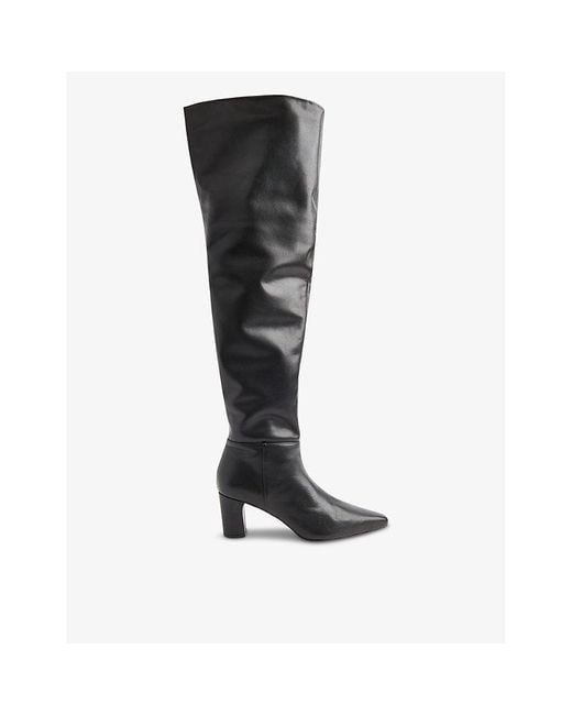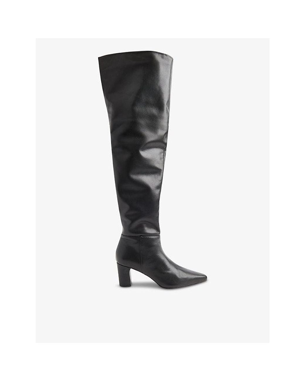 Women's Black Inessa Heeled Leather Over-The-Knee Boots