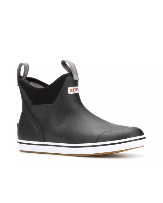 Are you an off-shore angler looking for a well-performing boot? Pick the 6-Inch Deck boot from Xtratuf. Built waterproof, the ankle boot features a cushioned molded EVA footbed for reliable comfort. Also, a slip-resistant sole with chevron tread keeps you well supported. Color: black