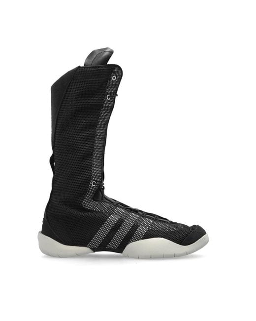 'Regu Boot' Ankle Sneakers are a sophisticated design by the brand Y-3, a result of collaboration between Japanese fashion guru Yohji Yamamoto and the German sports giant. This model combines avant-garde design with functionality, making it an ideal choice for street style enthusiasts and physical activity lovers. Made from top-quality Leather and Fabric, these black shoes with a futuristic aesthetic feature a mesh structure that provides optimal ventilation. Contrasting white stripes on the sides add a unique character. Full-length lacing allows for a perfect fit, while the padded interior and tongue increase wearing comfort. The thick, white sole with a wavy pattern is made from Rubber, offering excellent grip on various surfaces. These sneakers are not just a wardrobe piece but also an expression of style and personality. WHY Should YOU BUY This Product? * Combination of avant-garde design with functionality. * High-quality materials and finishing. * Versatility - perfect for physical activity and everyday wear. * Unique design from the renowned brand Y-3. Sole height: 1,5cm Sole height at the highest point: 2cm