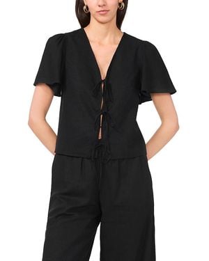Short Sleeve Tie Front Top - Black