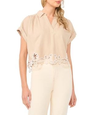Lace Trim Short Sleeve Crop Top - Natural