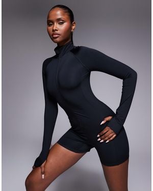 Active Quick Dry Running Zip Up Romper With Zip Phone Pocket And Back Vent - Blue