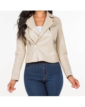 Asymmetric Faux Leather Jacket - White