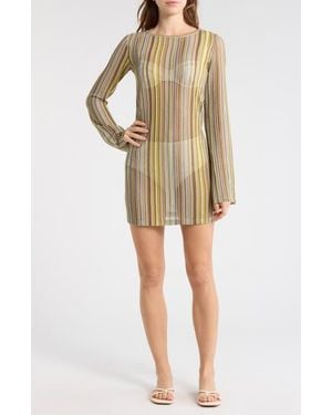 Stripe Crochet Bell Sleeve Cover-Up Dress - Natural