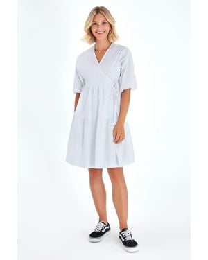 Waterfall Tie Waist A-Line Maternity/Nursing Wrap Dress - White