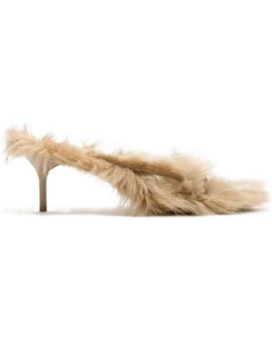Shearling-Trimmed Kitten-Heel Sandals - Natural