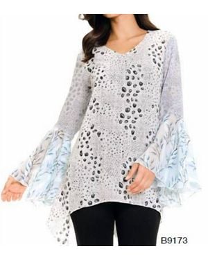 Chiffon Top With Bell Sleeves - Gray