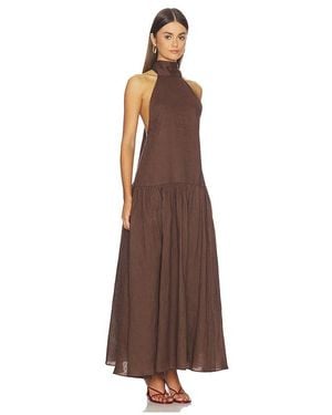 Linen Halter Drop Waist Maxi Dress - Brown
