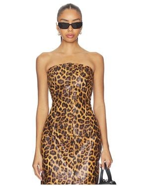 Leather Bandeau Peplum Top - Natural