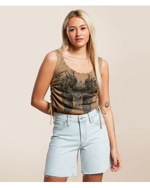 Crystal Canyon Cropped Fringe T-Shirt - Brown