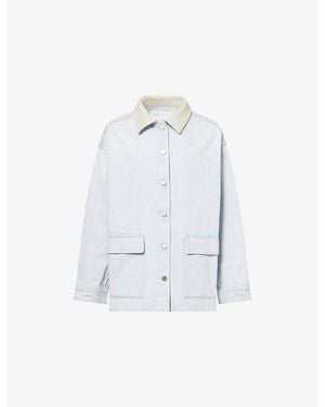 X Maria Mcmanus Leather-Trim Oversized Denim Jacket - Blue