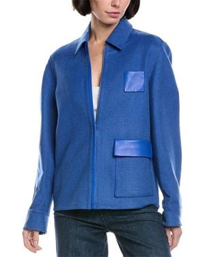 Madelyn Leather-Trim Cashmere Jacket - Blue