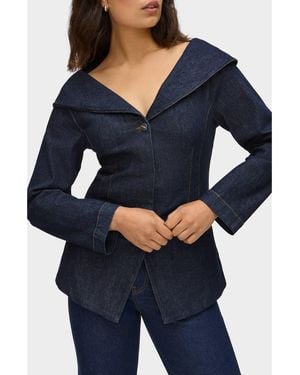 Elle Shawl Collar Denim Jacket - Blue