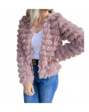 Dressy Faux Fur Fringe Open Front Jacket - Purple