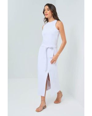 Galina Performance Twill Belted Skirt - White