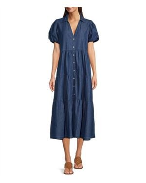Long Tiered Dress With Puff Sleeve - Blue