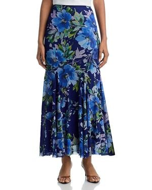 Floral Print Fishtail Mesh Maxi Skirt - Blue