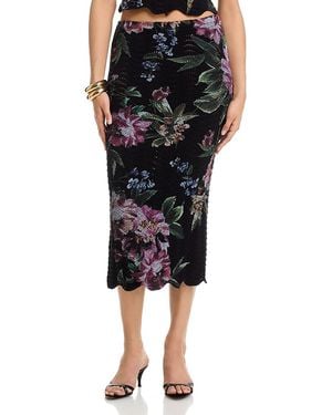 Floral Sweater Knit Midi Skirt - Black