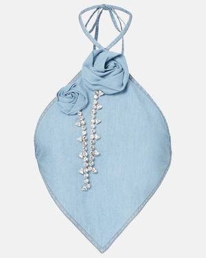 Cropped Crystal-embellished Wool-blend Crepe Bustier Top - Pink