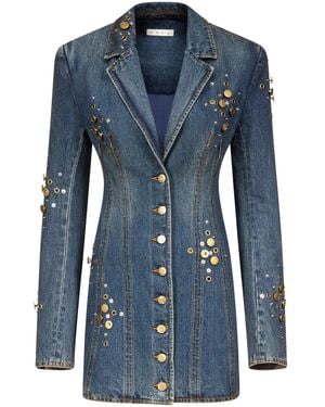 Crystal Button Studded Denim Mini Blazer Dress - Blue