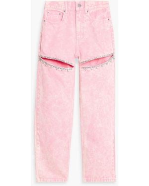 Cutout Crystal-Embellished High-Rise Straight-Leg Jeans - Pink