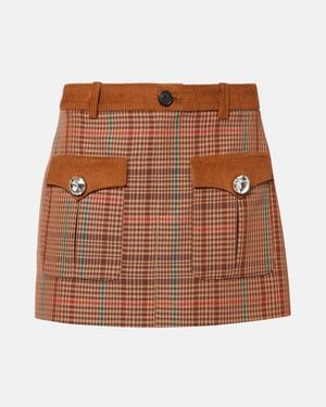 Checked Wool-Blend Miniskirt - Brown