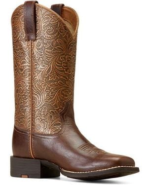 Round Up Narrow Cutter Toe Western Boot - Brown