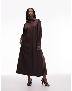 Pure Cotton Maxi Shirt Dress With Side Splits - Brown