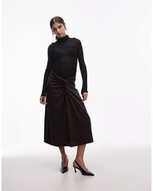 Pull On Stretch Midi Skirt With Twist Detail - White