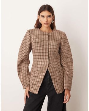 Clean Collarless Sculpted Blazer - Natural