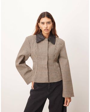 Structured Jacket With Contrast Leather Collar - Natural