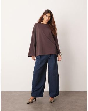 Curve Tailored Pleated Detail Wide Leg Barrel Pants - Brown