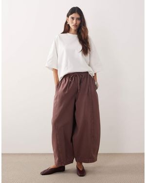 Ultimate Tailored Wide Barrel Leg Trouser With Cinched Waist - Brown