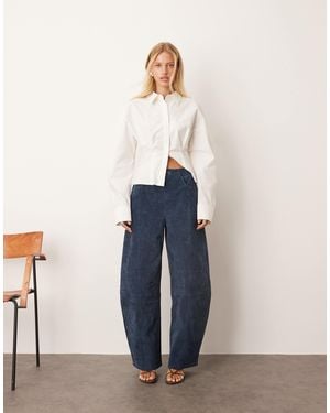Sydney Suede High Waisted Barrel Trouser - Blue