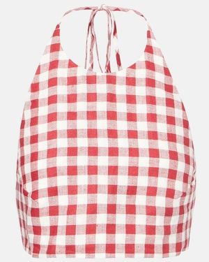 Marseille Gingham Linen Crop Top - Red