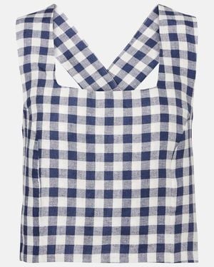 Cozumel Gingham Linen Crop Top - Blue