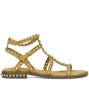 Studded Leather Ankle Strap Flat Sandals - Metallic