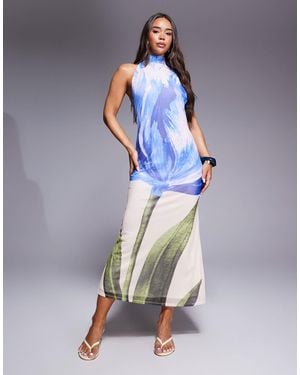 Asos Design Petite Cowl Neck Plunge Maxi Dress With Back Detail - Multicolor