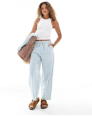 Seersucker Pull On Barrel Leg Pants Co-ord - Blue