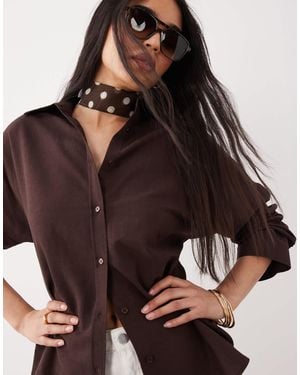 Mix & Match Textured Leather Look Oversized Shirt - Brown