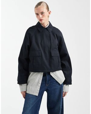 Cotton-blend Utility Pocket Short Cape Back Trench Coat With Water Repellent Finish - Blue