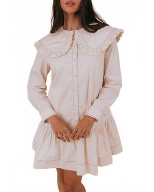 Ava Ruffled Collar Mini Shirt Dress - Multicolor