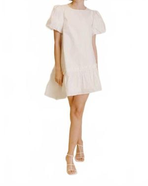 Smocked Puff Sleeve Mini Dress - White