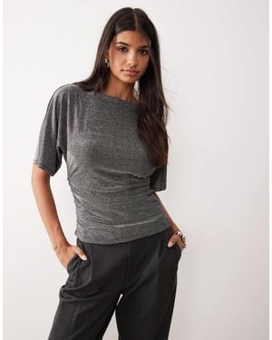 Asymmetric Tie Shoulder Detail Glitter Top - Gray